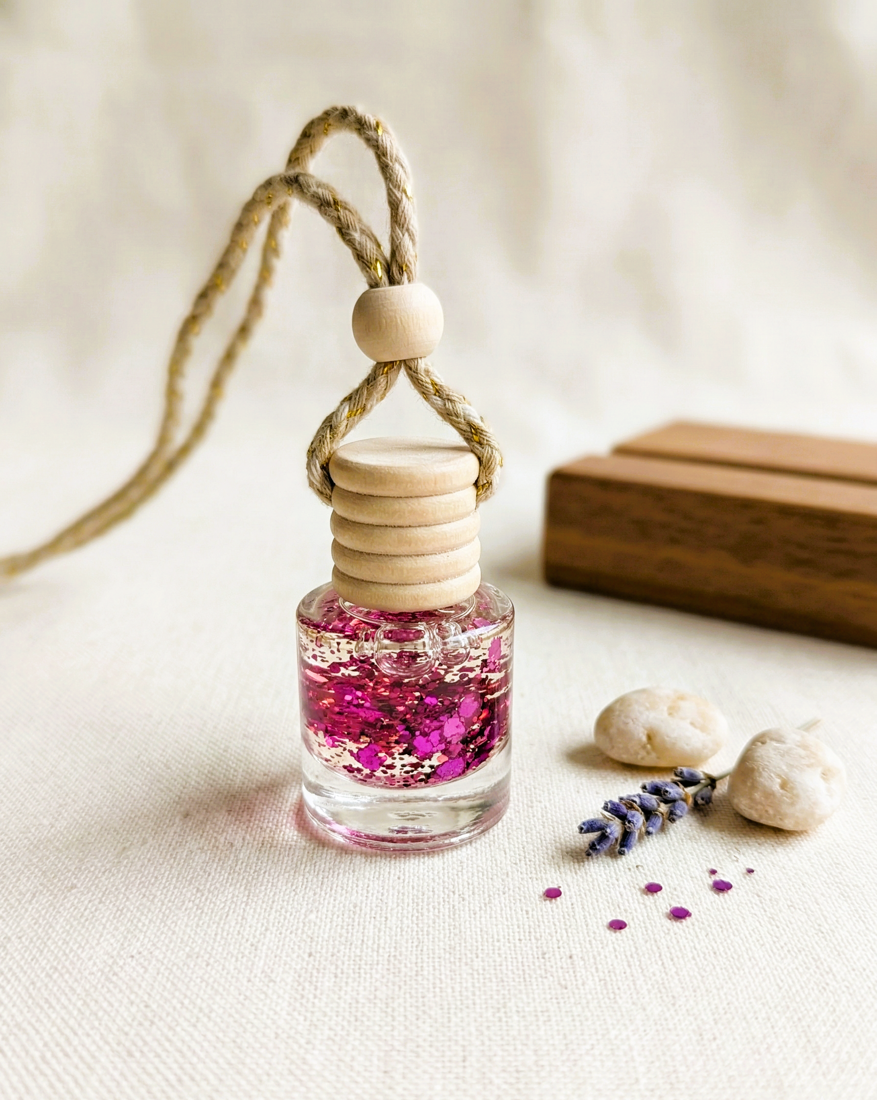 Σχεδιασμός: Κομψό γυάλινο φιαλίδιο (8 ml) με ξύλινο πώμα διάχυσης και εντυπωσιακό glitter.