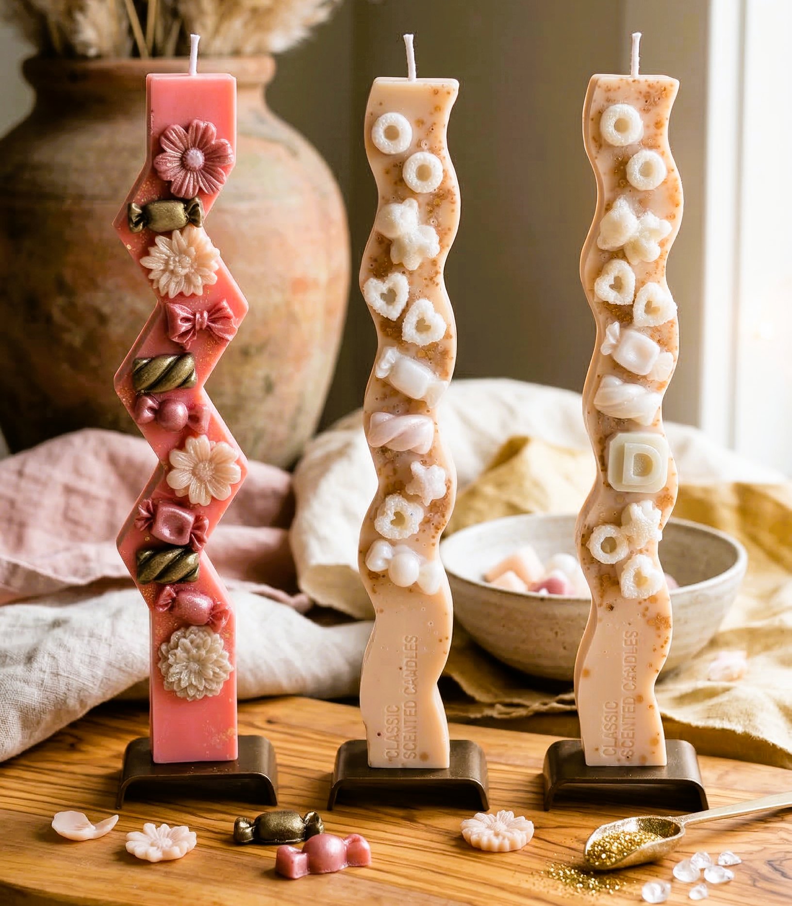 - Τα Charms: Διακόσμησε το κερί σου με χειροποίητα wax charms! Επιλογές από ρομαντικές μαργαρίτες, “λαχταριστά” κερένια μπισκότα, sprinkles ή minimal στοιχεία