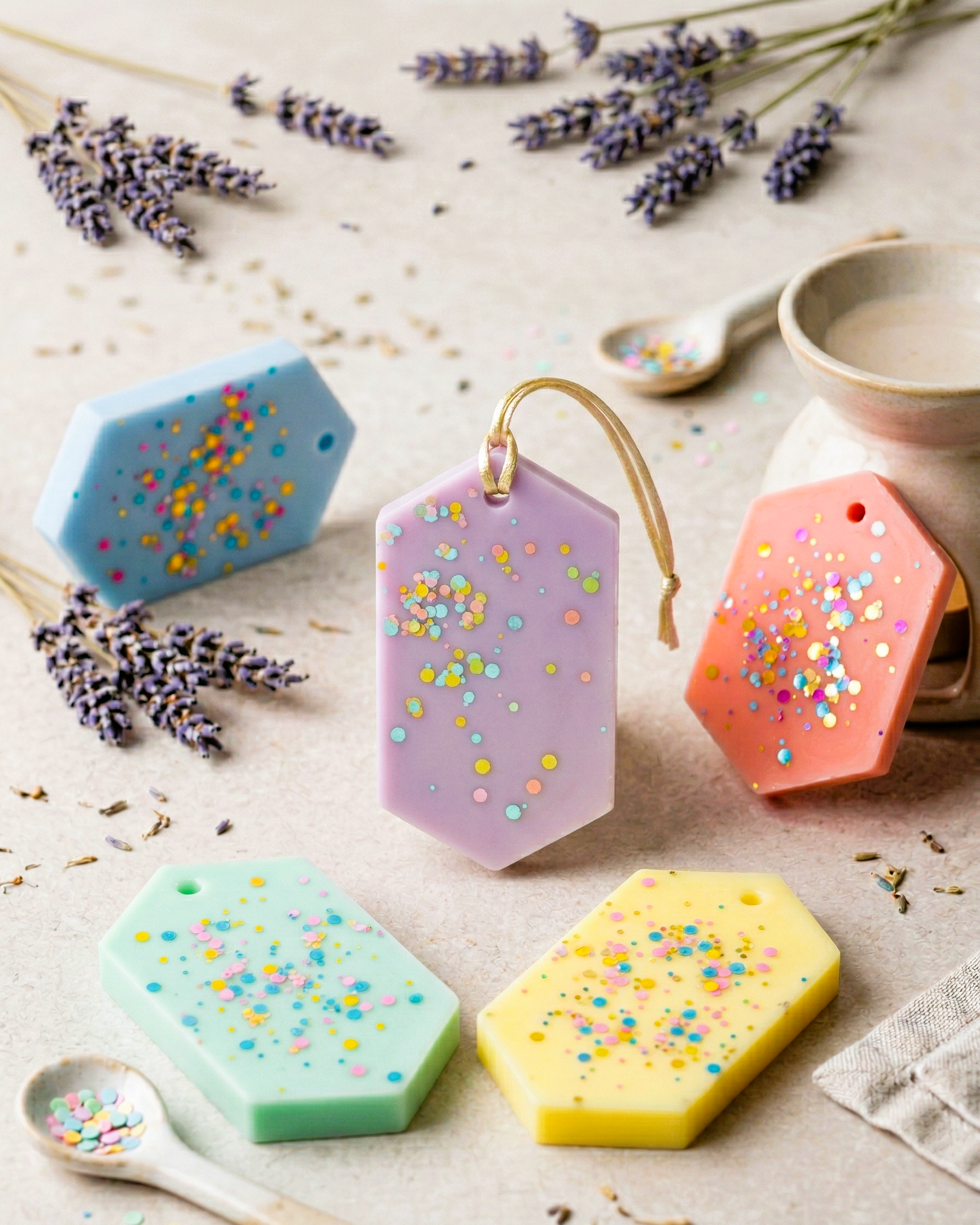 Μεταμορφώστε την καθημερινή εμπειρία της προετοιμασίας σας σε μία στιγμή πολυτέλειας. Οι χειροποίητες κέρινες αρωματικές ταμπλέτες μας δεν είναι απλώς αρωματικά· είναι μικρά έργα τέχνης που “αγκαλιάζουν” τα ρούχα σας με φινέτσα και χρώμα. Με κομψό design και playful sprinkles, και όχι μόνο, είναι το μυστικό για μία ντουλάπα που αναπνέει φρεσκάδα 24/7.