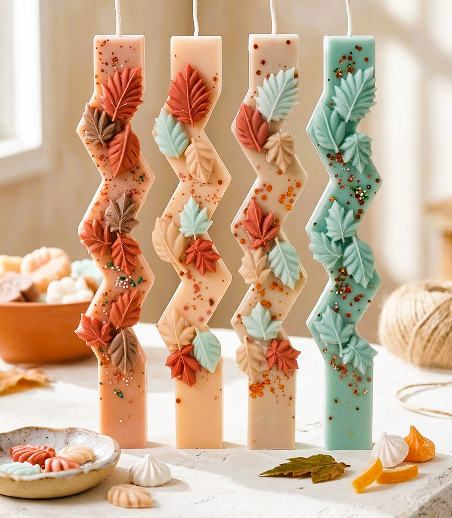 Η φετινή μας πρόταση για το Πάσχα εμπνέεται από την απλότητα και την ομορφιά ενός φύλλου. Κάθε λαμπάδα είναι ένας μικρός καμβάς, στολισμένος με περίτεχνα, ανάγλυφα φύλλα που μοιάζουν να έχουν “παγώσει” πάνω στο κερί.
