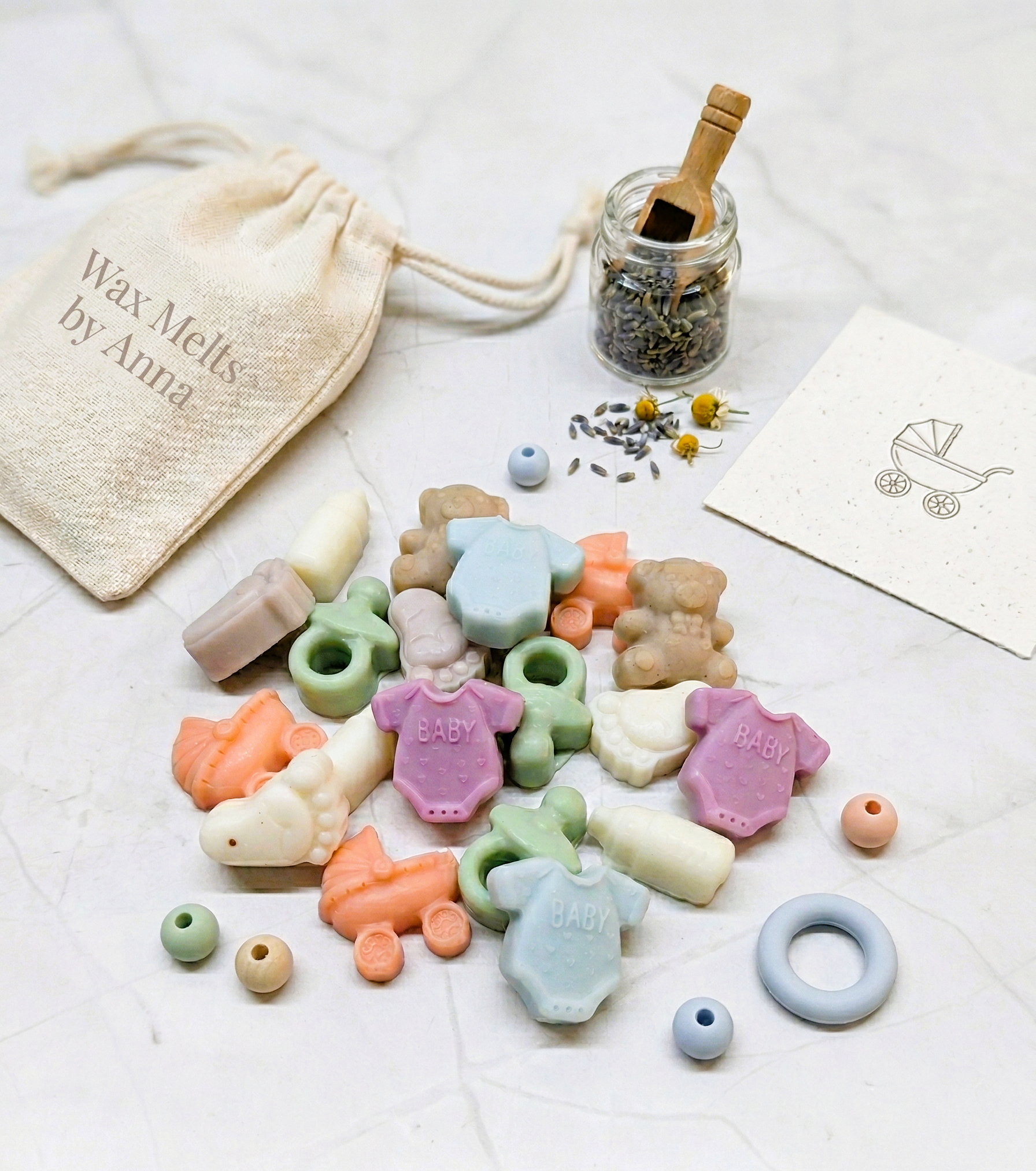 Καλωσορίστε τη νέα ζωή με μία τρυφερή συλλογή από 20 χειροποίητα wax melts (~ 50 g) σε υπέροχα βρεφικά σχέδια. Πλασμένα με αγάπη και φροντίδα, αναδύουν νότες καθαριότητας και φρεσκάδας που αγκαλιάζουν τον χώρο.