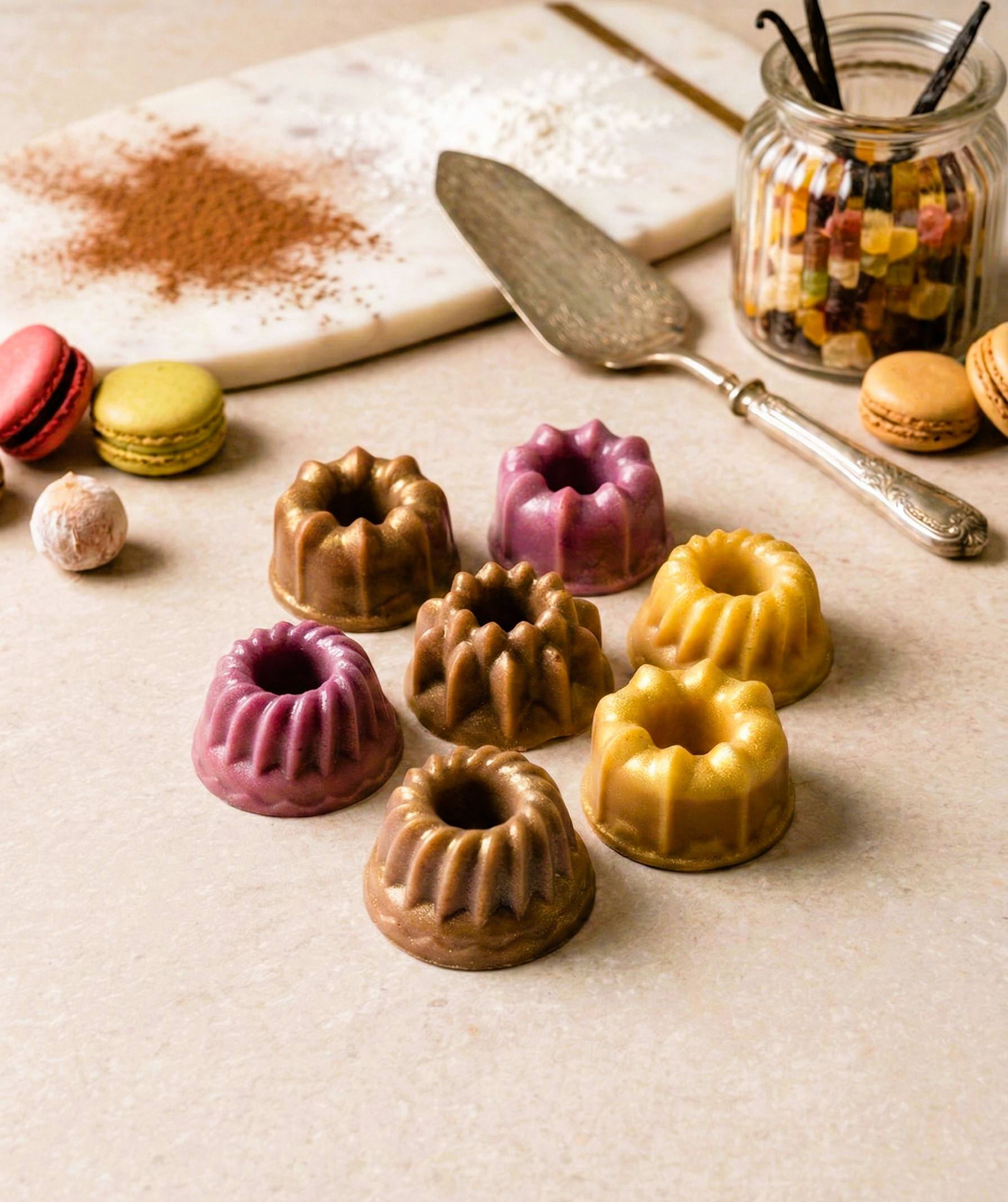 Ξέχνα τα κλασικά wax melts. Αυτά τα χειροποίητα wax melts σε σχήμα κέικ (~ 55 g) είναι μία ωδή στη ζαχαροπλαστική! Με τέλεια σχηματισμένες καμπύλες, “αφράτη” όψη και μία πολυτελή στρώση από χρυσή άχνη, μοιάζουν τόσο αληθινά που θα θέλετε να τα δοκιμάσετε. Κάθε κεκάκι είναι φιλοτεχνημένο στο χέρι για να φέρει τη ζεστασιά ενός φρεσκοψημένου γλυκού απευθείας στον αρωματιστή σας. Καθώς το “γλάσο” αρχίζει να λιώνει, ο χώρος πλημμυρίζει με τις πιο gourmet νότες.