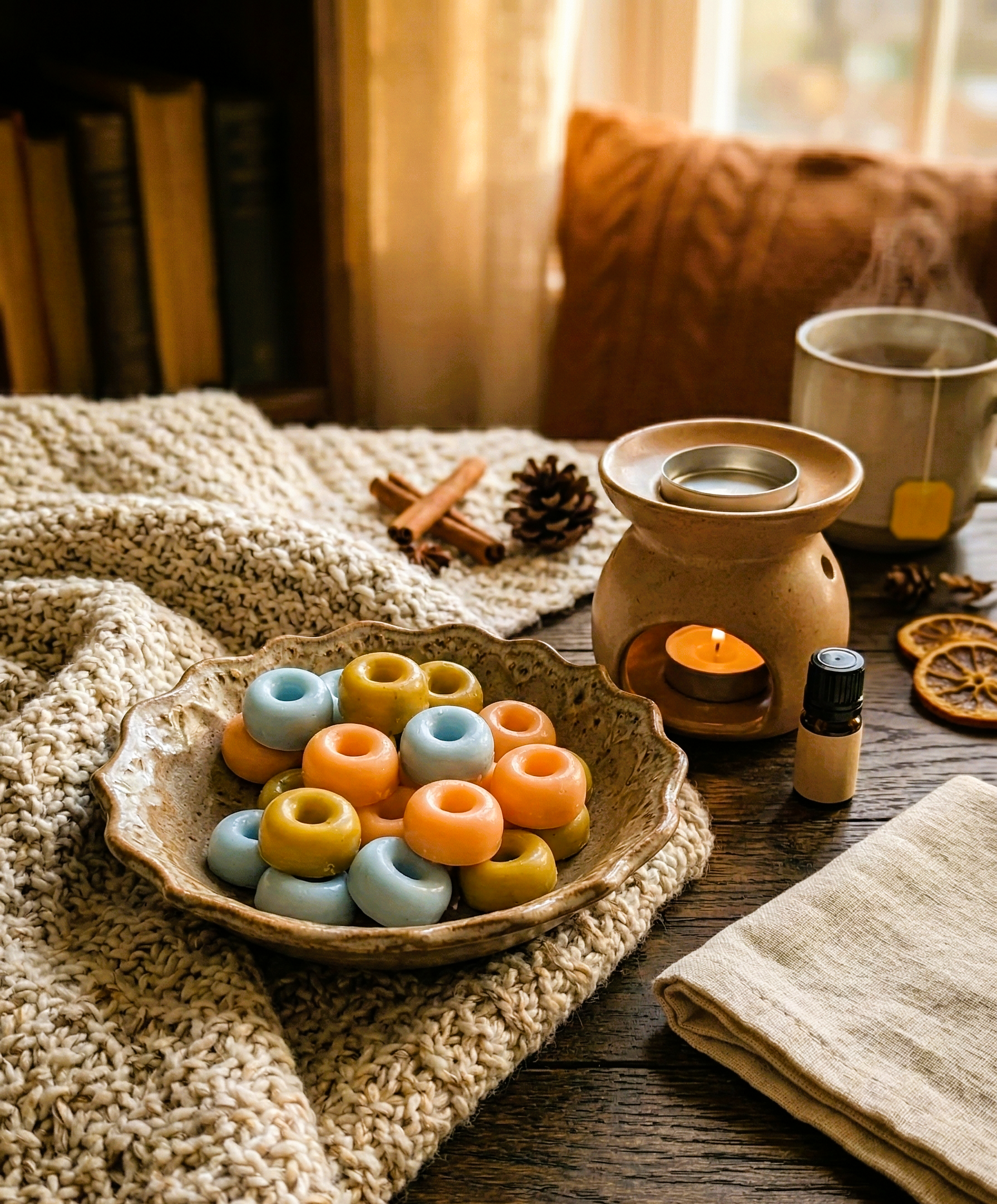 Ποιος μπορεί να αντισταθεί σε ένα φρεσκοψημένο donut; Η συλλογή μας από 20 χειροποίητα mini wax melts (~ 50 g) φέρνει τη γλυκιά θαλπωρή ενός ζαχαροπλαστείου απευθείας στο σαλόνι σας. Με ζωηρά χρώματα και παιχνιδιάρικο design, αυτά τα donuts υπόσχονται να “γλυκάνουν” την ατμόσφαιρα χωρίς καμία ενοχή!